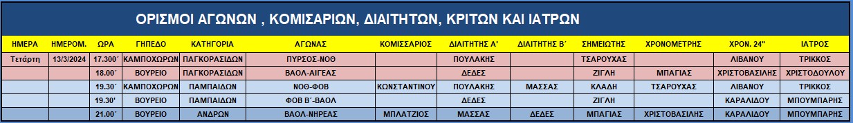 Αγώνες Τετάρτης 13 Μαρτίου 2024