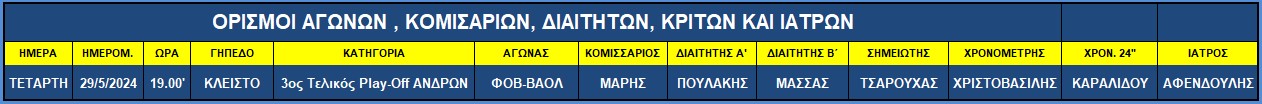 Ορισμοί 3ου Τελικού Ανδρών