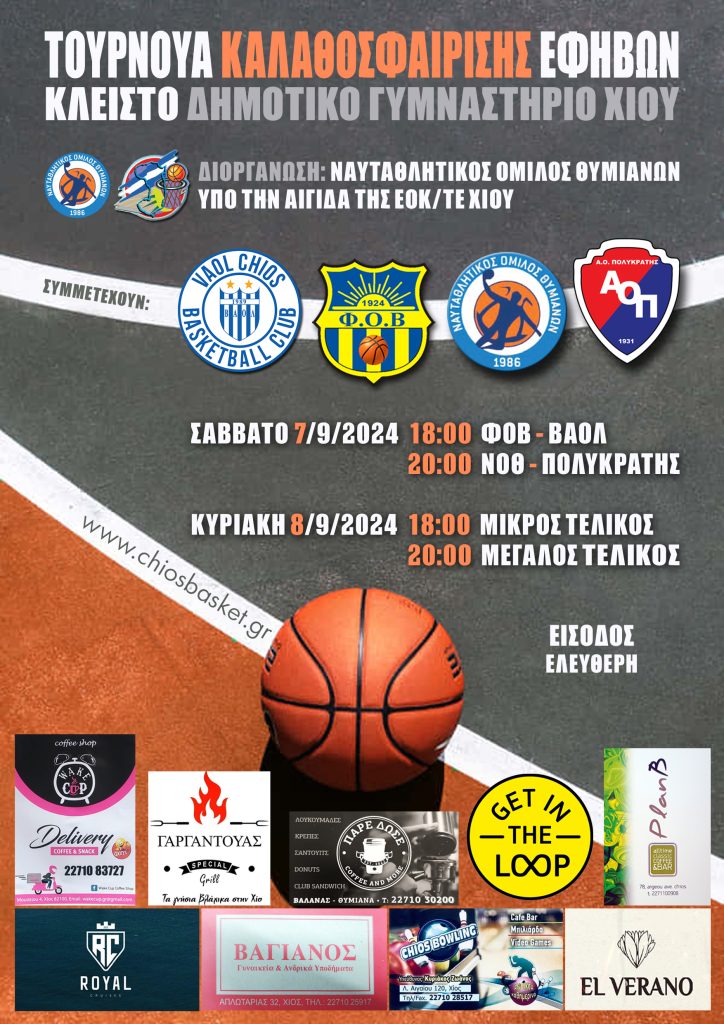 Το Σαββατοκύριακο 7 και 8 Σεπτεμβρίου ο Ν.Ο.Θ. διοργανώνει τουρνουά Εφήβων υπό την αιγίδα της ΤΕ ΕΟΚ Χίου με την συμμετοχή των ομάδων: ΒΑΟΛ, ΝΟΘ, Πολυκράτης Σάμου και ΦΟΒ.