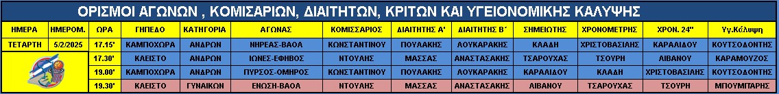 Aγώνες Τετάρτης 5 Φεβρουαρίου 2025