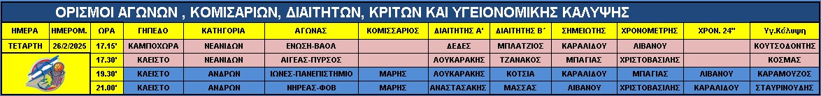 Αγώνες Τετάρτης 26 Φεβρουαρίου 2025