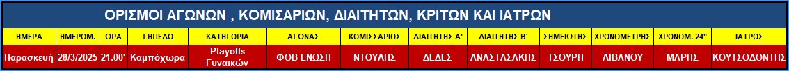 Αγώνας Παρασκευής 28 Μαρτίου 2025