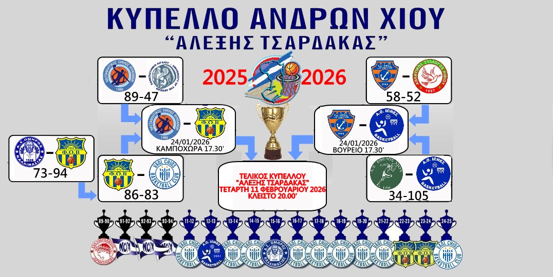 Η ημιτελική φάση με τα ζευγάρια ΝΟΘ-ΦΟΒ και ΝΗΡΕΑΣ-ΙΩΝΕΣ θα γίνει στις 24 Ιανουαρίου 2026 στις 17.30′ σε Καμπόχωρα και Βούρειο αντοίστιχα, ενώ ο Μεγάλος Τελικός του Κυπελλου Ανδρών “Αλέξης Τσαρδάκας” 2025-2026 θα γίνει στα πλαίσια της Γιορτής του Μπάσκετ 2026 στο Κλειστό την Τετάρτη 11 Φεβρουαρίου 2026 και ώρα 20.00′