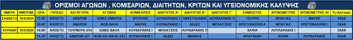 Αγώνες Σαββατοκύριακου 18-19 Απριλίου 2026